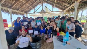 Las actividades iniciaron con una bienvenida y presentación del equipo técnico y voluntarios del campamento. Posteriormente, se llevó a cabo una actividad sensorial que permitió a los asistentes conectar con el entorno costero a través del sonido de las olas y el aroma de la naturaleza. Durante el taller sobre biología y ciclo de vida de las especies, los participantes adquirieron conocimientos sobre las tortugas marinas y las labores de conservación que realiza el Campamento Nakú Kayám.