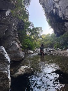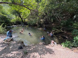 Desde primera hora de la mañana, los participantes se adentraron en los senderos rocosos que discurren por Nizanda, siguiendo un río de aguas cristalinas hasta la zona de aguas termales, el escenario perfecto para reconectar con la naturaleza y desconectar la mente.