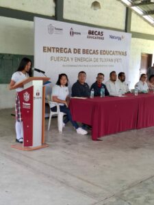 Scholarship recipients spoke to express their gratitude to GPG, the Día Solidario Association, the FET program, and the Tuxpan III and IV plants, appreciating not only the academic support but also the formative accompaniment that connects them with environmental and social causes.