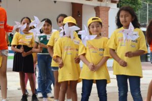 In addition, the Juchitán fire department, led by Francisco Vásquez Jiménez, gave a safety talk and shared joyful moments with the children, who even had the chance to try on firefighting gear. This closing activity reaffirmed the project’s collaborative spirit and the importance of uniting community, volunteers, and institutions.