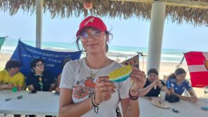 Afterwards, a sensory activity allowed participants to connect with the coastal environment through the sound of the waves and the scent of nature. Followed by a workshop on biology and the life cycle of species, where participants learned about sea turtles and the conservation efforts carried out by Nakú Kayám Camp.