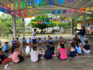 For five days, 30 boys and girls from Cristóbal Colón Elementary School participated in playful, reflective, and collaborative activities that encouraged teamwork, creativity, and a sense of belonging. Accompanied by 10 Xquendas teenage volunteers — youths between 13 and 15 years old training as agents of change — the course became a space for collective learning and youth leadership.