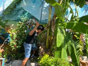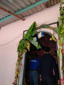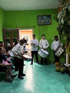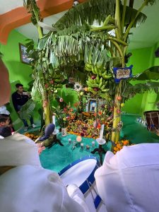 In the first home, volunteers helped prepare a Biguie’, a traditional altar made with fruits, bread, and flowers tied together. The family, grateful for their effort, offered tamales and bread as a gesture of reciprocity.