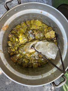 The altar’s structure was made of banana leaves harvested from the community garden, integrating an environmental aspect into the ritual. The community added flowers, candles, and photographs of their loved ones, creating a shared space of remembrance filled with emotion and reflection. The celebration closed with a communal meal of tamales and rice milk prepared by the neighbors.