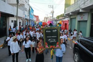 The Calenda began at 17:00 at the “5 de septiembre” monument and ended near the Municipal Palace of Juchitán. To the beat of drums, flutes and boxes, the pre-Hispanic music club, made up of 17 children, performed local songs such as “Carreta Guié”, “Son Calenda”, “Burro loco” among others. At the front, two volunteers held the banner that introduced the talented musicians