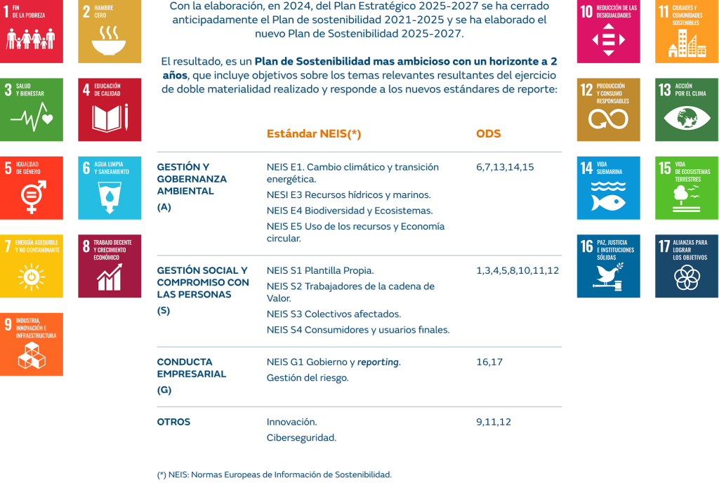 The new Sustainability Plan 2025–2027, which stems from the company’s strategy, is aligned with the identified material issues and takes into account leading international initiatives such as the Task Force on Climate-related Financial Disclosures (TCFD), the Task Force on Nature-related Financial Disclosures (TNFD), and the criteria of the European Corporate Sustainability Reporting Directive.